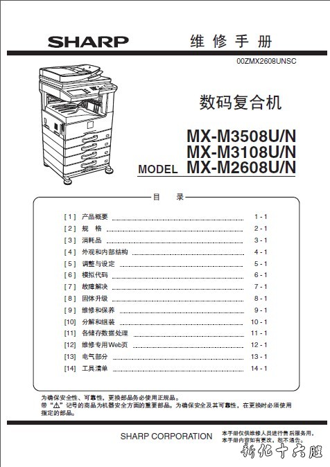 夏普MX-M3508U/N M3108U/N M2608U/N M261N N311n 复印机维修手册