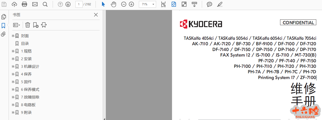 京瓷TASKalfa 7054ci 6054ci 5054ci 4054ci 中文维修手册 TASKalfa 4054ci / TASKalfa 5054ci / TASKalfa 6054ci / TASKalfa 7054ci AK-7110 / AK-7120 / BF-730 / BF-9100 / DF-7100 / DF-7120 DF-7140 / DF-7150 / DP-7150 / DP-7160 / DP-7170 FAX System 12 / IS-7100 / JS-7110 / MT-730(B) PF-7120 / PF-7140 / PF-7150 PH-7100 / PH-7110 / PH-7120 / PH-7130 PH-7A / PH-7B / PH-7C / PH-7D Printing System 17 / ZF-7100