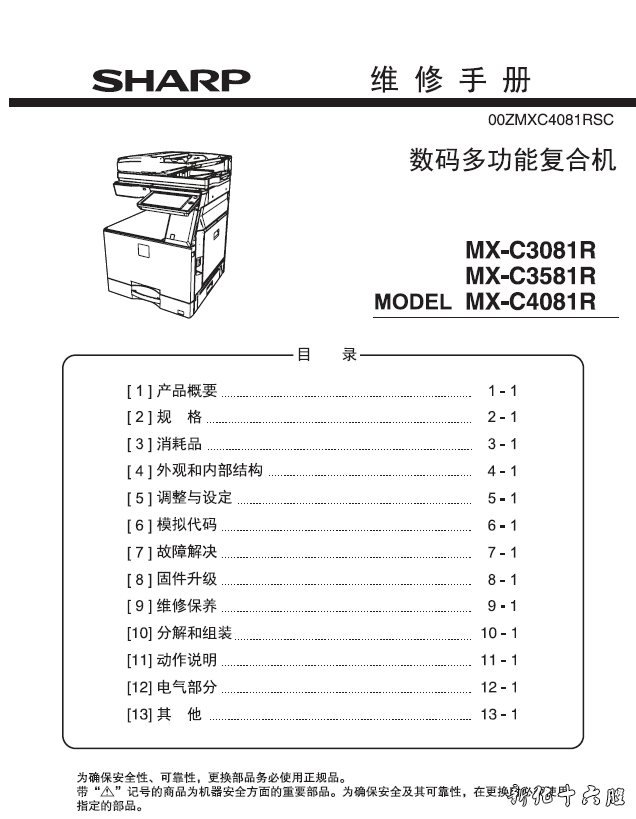 夏普 SHARP MX C3081R C3581R C4081R 复印机中文维修手册 资料