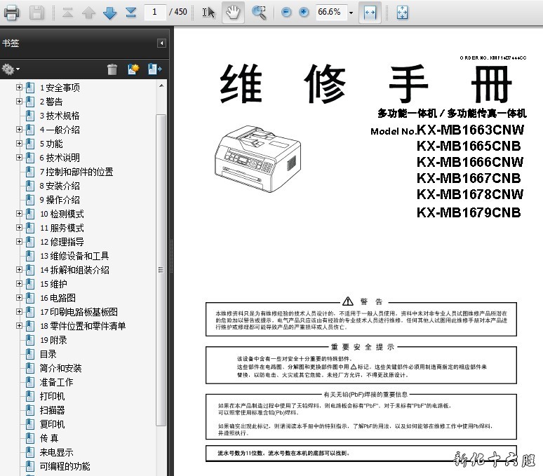 松下 KX MB 1663 1665 1666 1667 1678 1679 中文 维修手册