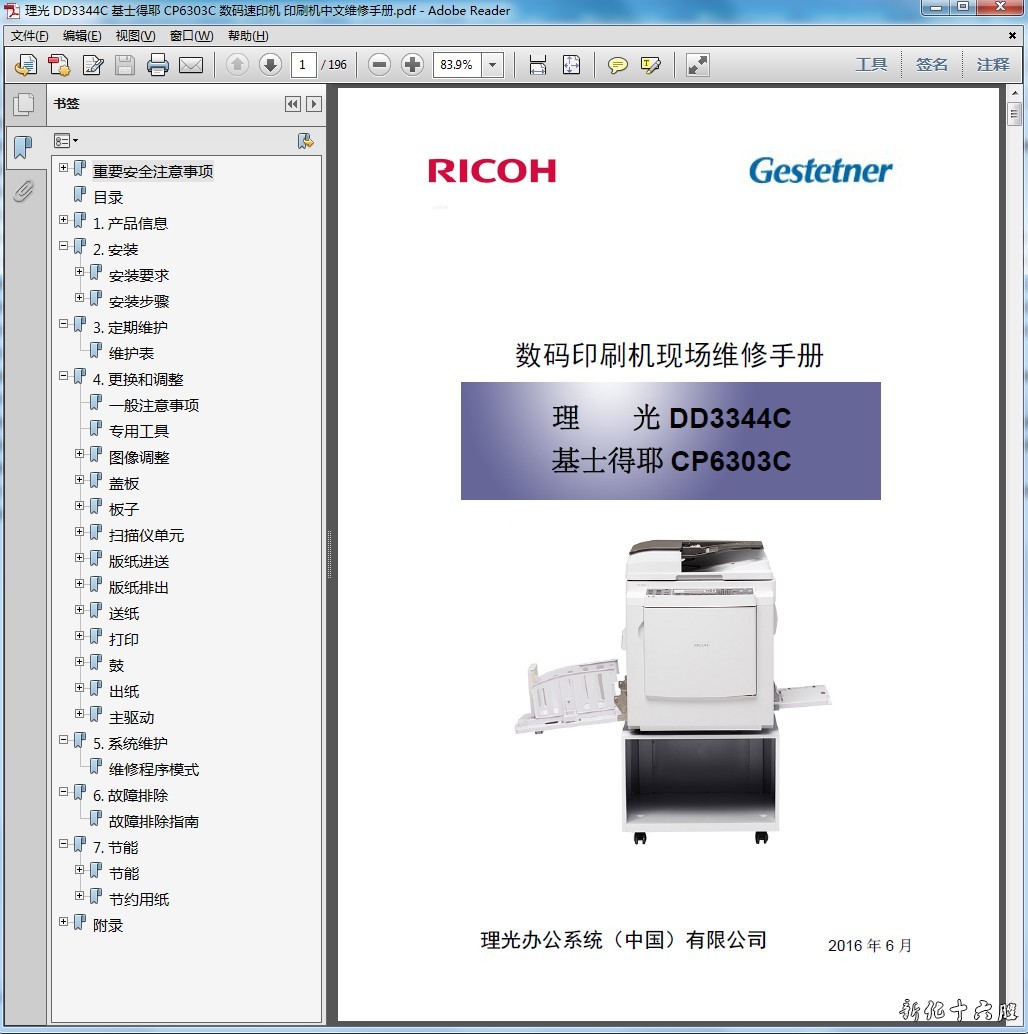 理光Pro C9200 ,C9210中文维修手册全