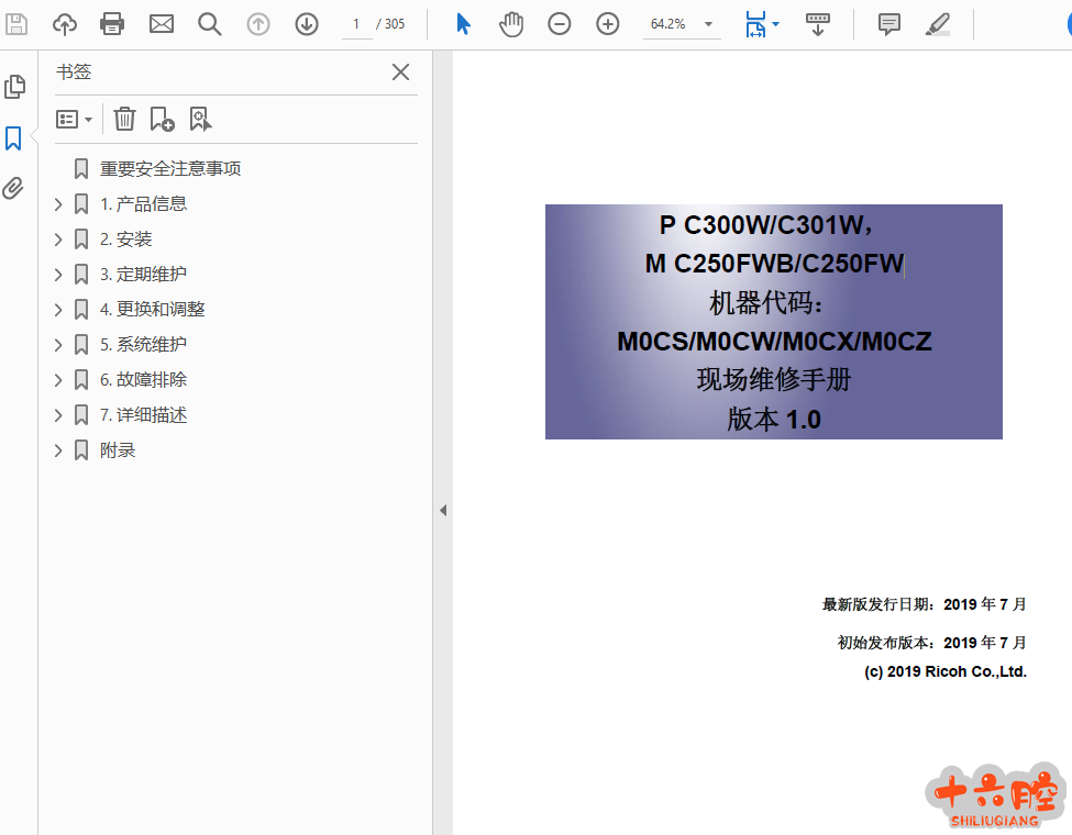 理光P C300W,C301W,M C250FWB,C250FW中文维修手册