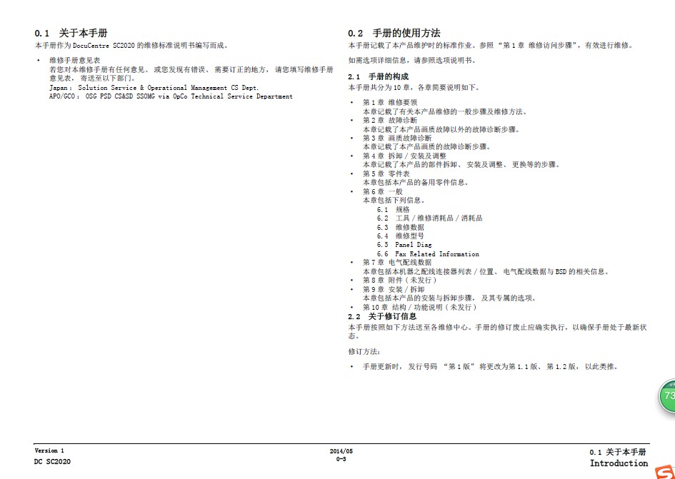 施乐Apeos C2060_C2560_C3060中文维修手册1.1版本