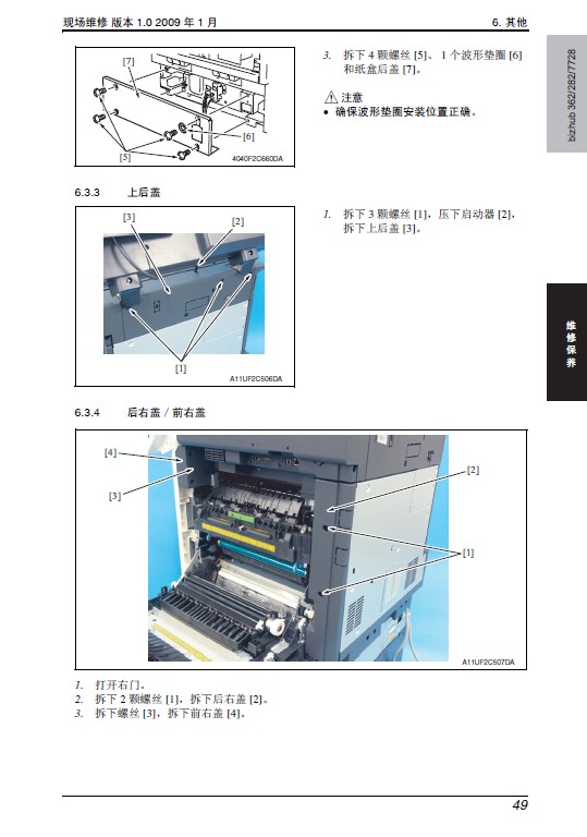 柯尼卡美能达 柯美bh 282 362 7728 复印机中文维修手册 维修资料语 言:中文格 式:PDF电子版,无加密页 数:840页手册内容详实,图文并茂,是维修人员的好帮手,有了维修手册,这款机子的拆卸、故障排除您就不用再发愁了!即使是普通的用户,也可以根据维修手册解决简单的问题。