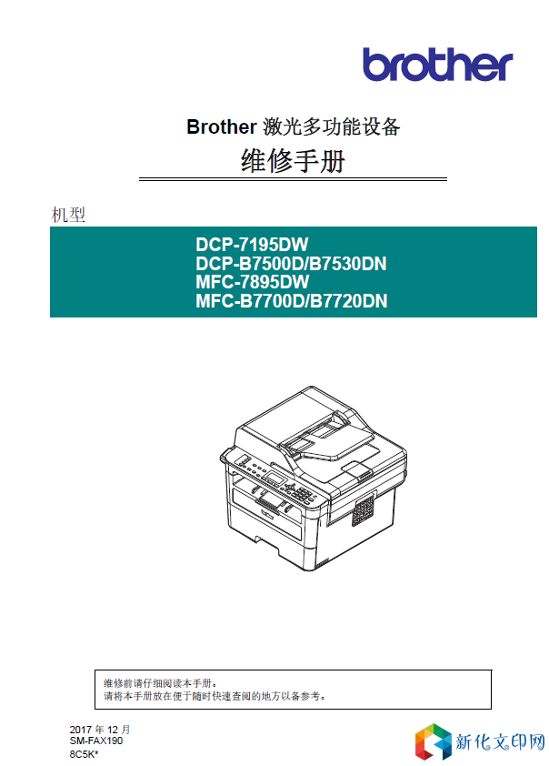 兄弟 DCP-7195DW B7500D B7530DN MFC-7895DW B7700D B7720DN 黑白激光打印机中文维修手册