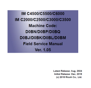 IM C2000_C2500_C3000_C3500_C4500_C5500_C6000__维修手册__V1.05 082624英文最新版本 IM C4500/C5500/C6000 IM C2000/C2500/C3000/C3500 Machine Code: D0BN/D0BP/D0BQ D0BJ/D0BK/D0BL/D0BM Field Service Manual Ver. 1.05