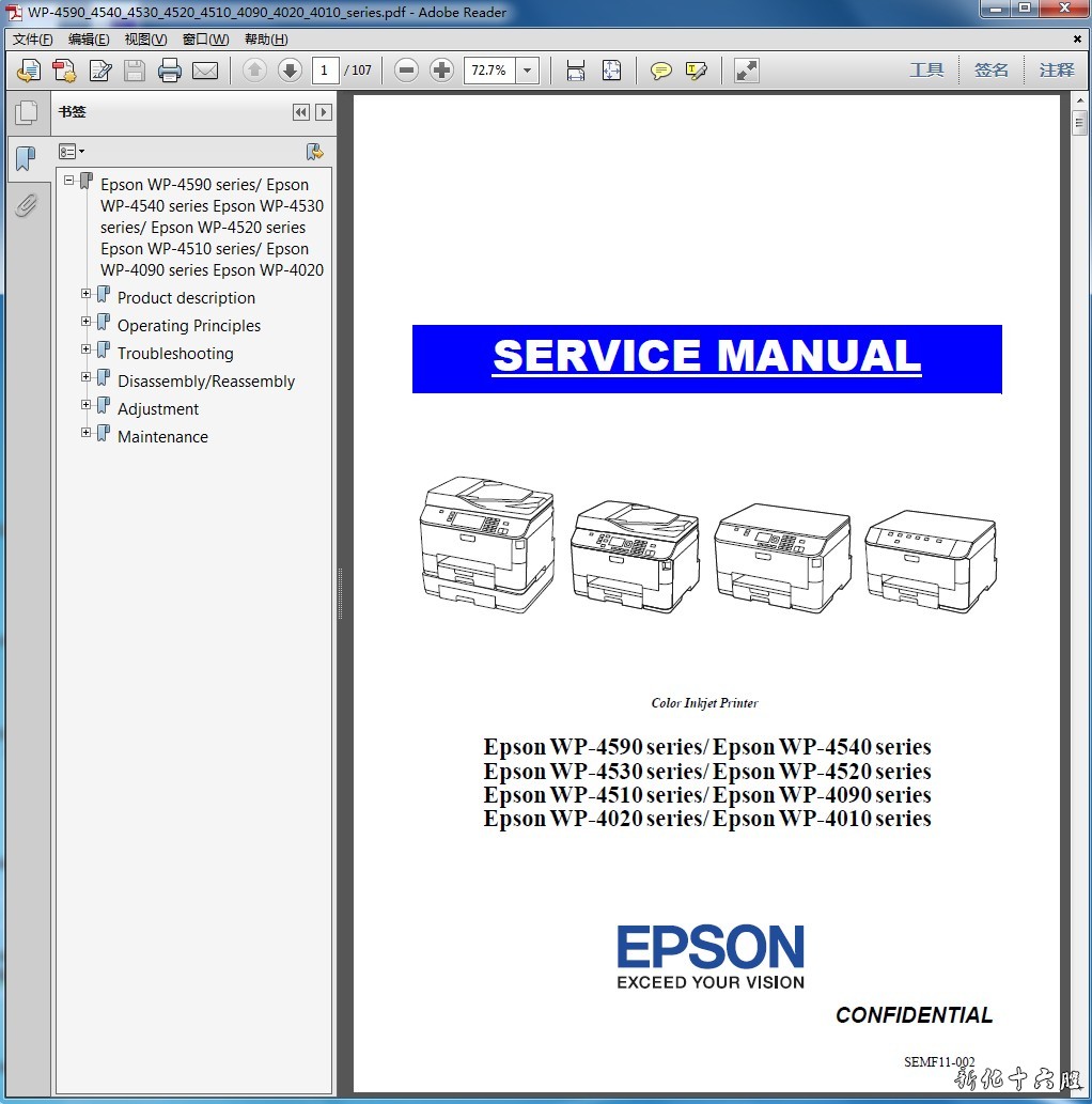 语 言:英文格 式:PDF电子版,无加密页 数:107页手册内容详实,图文并茂,是维修人员的好帮手,有了维修手册,这款机子的拆卸、故障排除您就不用再发愁了!即使是普通的用户,也可以根据维修手册解决简单的故障。