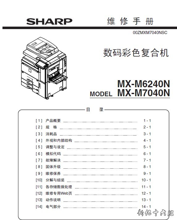 夏普MX-M6240N M7040N M6240N彩色复印机中文维修手册