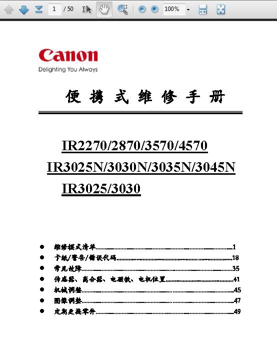 佳能IR2270 2870 3570 4570 3025 3030 3035 3045便携维修手册 链接:https://pan.baidu.com/s/1Z639Y0DcvH-Mb2N3Qn8aSA&shfl=sharepset 提取码:320a |