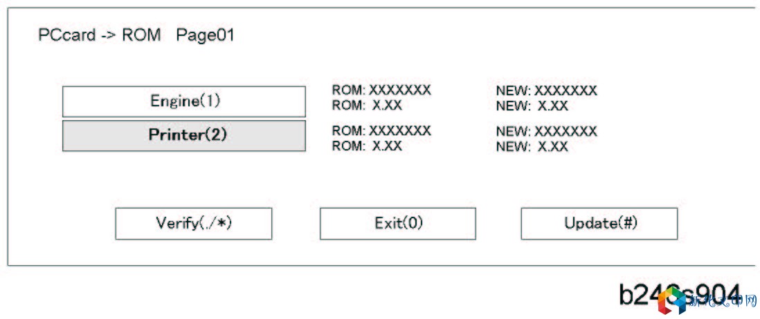 • 如果按[退出](或[0]键),将返回到常规操作屏幕。 • 在操作面板上按[启动]键可选择和下载屏幕上显示的全部选项。 • 若要取消选择并做出新的选择,在操作面板上按[清除]键。 • “ROM”:这是指此时机器中安装的ROM 固件的编号和其它版本信息。 • “NEW”:这是指SD 卡上固件的编号和其它版本信息。 7. 以相反颜色显示所选项目时,在操作面板上按[更新]按钮或[#]键可开始更新。按[更新]之后: