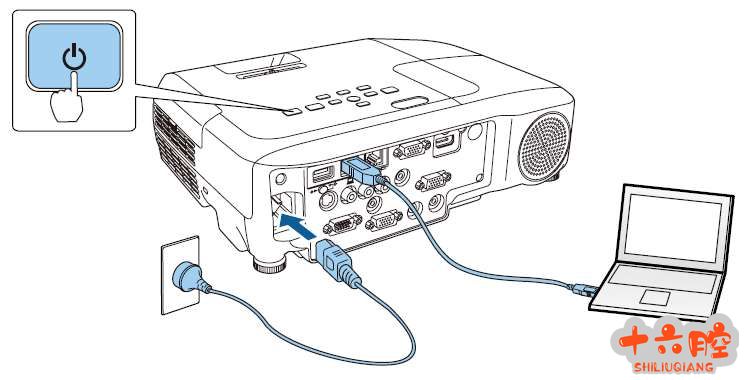 2.3. 按住“电源”开关按键的同时将电源线插入投影机电源插孔,当所有指示灯亮起时,松开“电源”按键