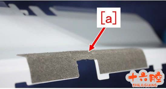 故障原因 纸张边缘卷曲较大通过下图所示的纸路时,在预对位导板组件[1]与对位压力辊间隙[a]会导致发生以上折角问题。