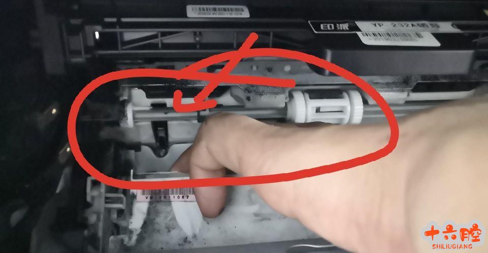 检测发现左侧抬纸板下面没有卡入到对应的槽内,导至抬纸板左侧和后壁没有间距,所以在抬纸时搓纸轮带动是无法抬动抬纸板,所以导至无法进纸。如图为正常抬纸板卡位。
