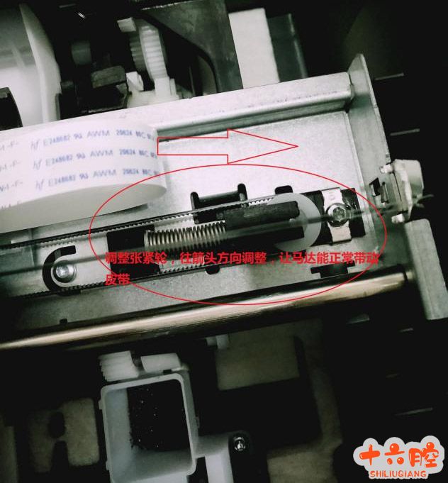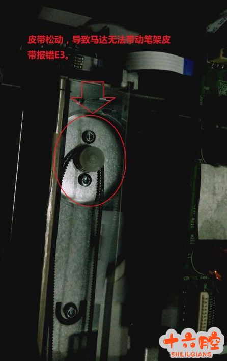 故障描述: 送修一台Smart Tank 518,机器新机开机面板提示E3,开机左侧有笔架马达空转声。 解决过程: 一般报错E3都是笔架无法正常移动导致的报错(笔架卡住)。 1. 打开墨盒盖,左右移动笔架。发现没有阻力,能顺畅的左右移动笔架。 2. 从墨盒盖处观察编码条也是正常位置。 3. 通电后发现:机器自检的过程中左测有笔架马达空转的声音,笔架没有正常移动,从经验判断故障可能出在马达和皮带这两个地方。 4. 拆开机器后发现皮带是松动的。观察皮带正常没有磨损与破裂。调整右侧皮带张紧轮,松开螺丝把轮往右侧方向移动,保证马达能正常带动笔架皮带,再固定好螺丝。装机后测试正常。 分享总结: E3报错提示是笔架被卡,需检测相关的编码条,笔架,笔架马达。
