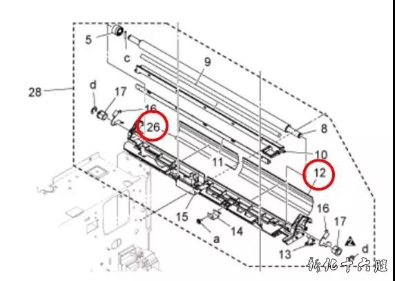 <现场对策> 2.可以单独更换对位辊导纸胶片 第12号零件:A8A1701500/ Guide Sheet。 第26号零件:A8A1703600/ Guide Sheet。