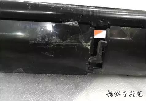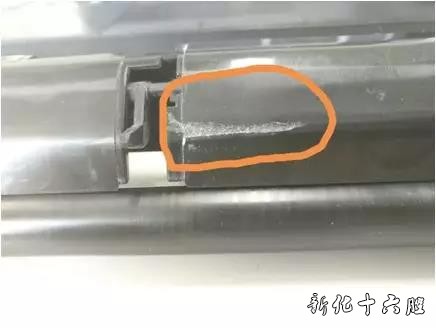 <原因分析> 拆下对位辊后,发现对位辊导纸胶片已经磨损,打印双面的纸张在第一次定影后,出现纸头蜷曲,纸张在双面单元翻转后,走到这个位置就顶住纸头。