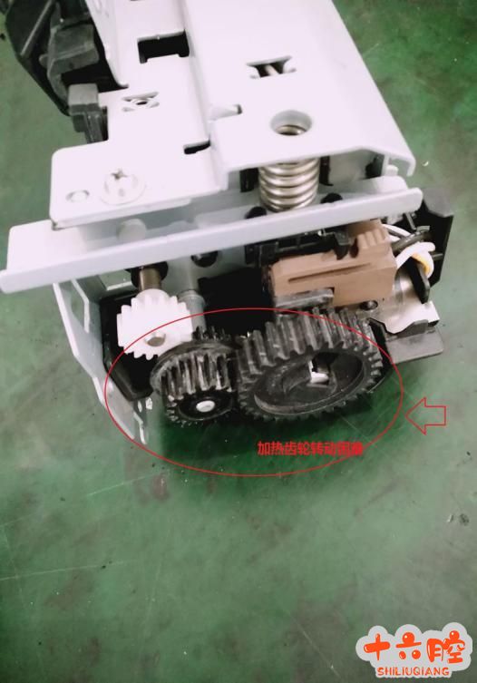 故障描述: M701N 电脑打印及脱机打印面板提示正在打印文档,机器无任何反应。 解决过程: 机器脱机也无法正常打印,排除电脑端的问题,优先做了初始化也是同样情况,检查机器各个传感器均正常,因加了双面打印与纸盒,去掉双面与纸盒脱机打印也是同样情况,考虑机器能正常就绪,只是在打印过程中无响应,怀疑主板与DC故障,在客户的现场找了一台机器对拆了主板,DC,电源板测试,也是同样的情况,只能重新判断故障点。 在拆后盖时发现机器后盖固定的两颗螺丝是脱落的,判断此机肯定是有拆装过,拆开后盖屏蔽后盖传感器开机自检,发现开机后加热组件转了不到2秒就停了,正常情况机器自检完加热组件才停止转动,目前怀疑问题出在加热组件,只能拆下加热组件观察,拆下加热后发现定影膜已经破损,而且手动转动压力辊齿轮阻力非常大,观察了机器上的加热齿轮组发现没有磨损,优先替换了一个加热组件测试,故障解决。最后测试发现,此机是因为加热组件上齿轮无法正常转动导致的无法打印。