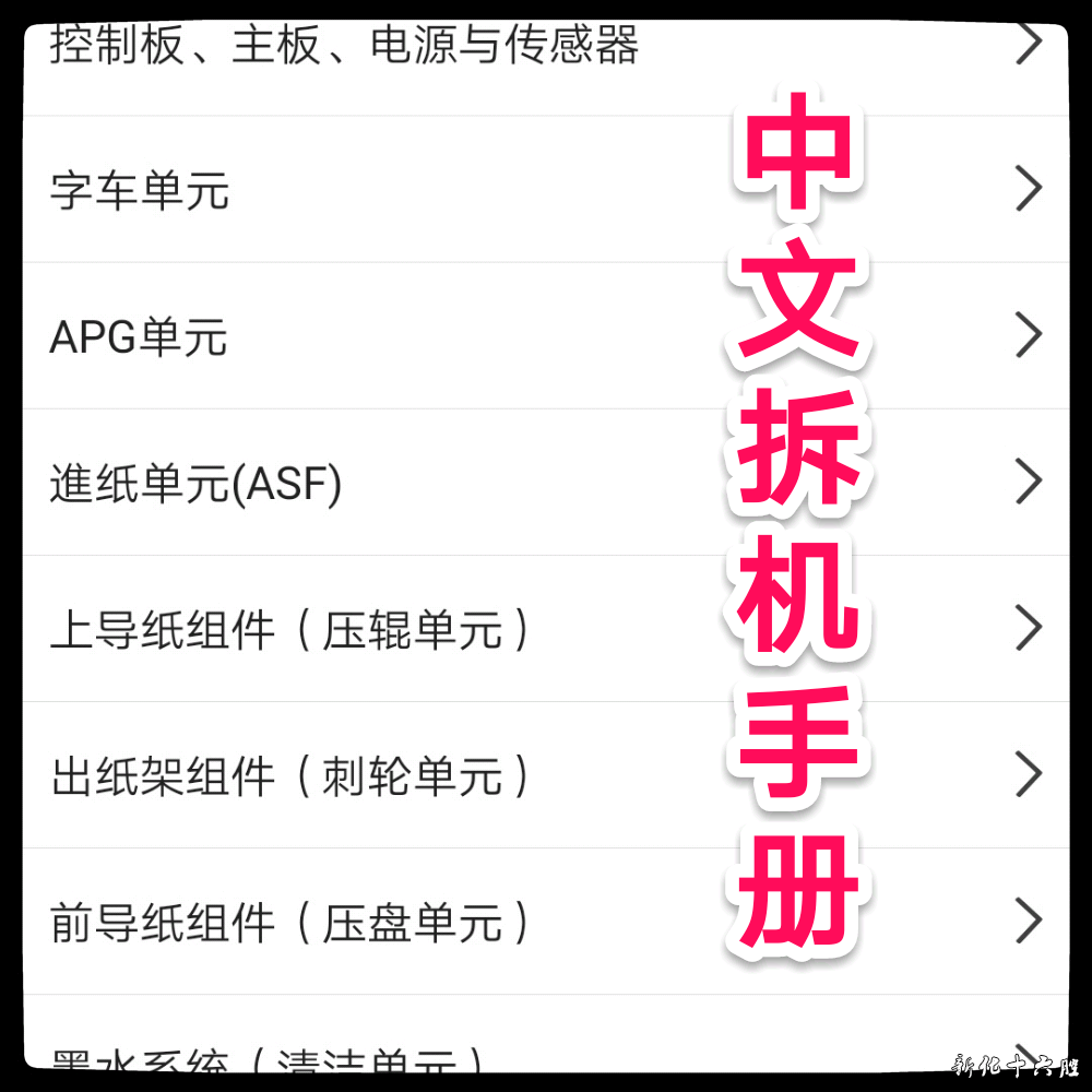 适用机型:R330/T50/R290/L800系列:L800/L801,R330,R290,A50/T50/P50/P59/P60/EP-320参考机型:R270系列:R260/R265/R270R390系列:R360/R380/R390其它爱普生机型和扩展机型均可参考 此手册非常详细,对于维修人员非常有价值,能够拆解到每个微小的零件,更有零件问题相关的处理方法,有了它,维修准确,什么拆解打印头,更换搓纸轮,不在话下,指哪拆哪,谁用谁知道。