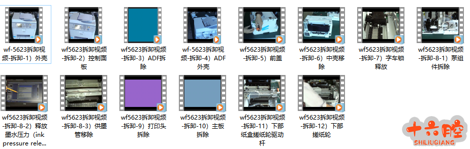 wf-5623拆卸视频-拆卸-1)外壳 wf5623拆卸视频-拆卸-2)控制面板 wf5623拆卸视频-拆卸-3)进稿器ADF拆除 wf-5623拆卸视频-拆卸-4)ADF外壳 wf5623拆卸视频-拆卸-5)前盖 wf5623拆卸视频-拆卸-6)中壳移除 wf5623拆卸视频-拆卸-7)字车锁释放 wf5623拆卸视频-拆卸-8-1)泵组件拆除 wf5623拆卸视频-拆卸-8-2)释放墨水压力(ink pressure release_2) wf5623拆卸视频-拆卸-8-3)供墨管移除 wf5623拆卸视频-拆卸-9)打印头拆除 wf5623拆卸视频-拆卸-10)主板拆除 wf5623拆卸视频-拆卸-11)下部纸盒搓纸轮驱动杆 wf5623拆卸视频-拆卸-12)下部搓纸轮