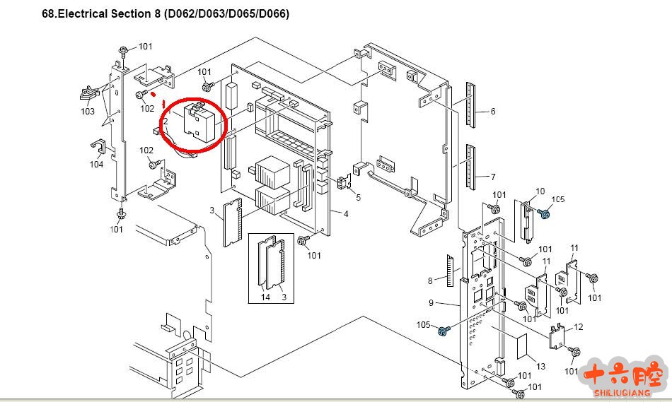 网络打印不能实现,但 USB 打印正常。 原因 机器在设置 IP 地址时无法保存IP 地址(在机器面板上显示输入的IP 地址,但打印配置页时却显示的是默认IP 地址),并且无法打印,电脑无法PING 通MFP。 维修过程 1.现场确认SP5-985 001 板载 NIC 为1 :启用. 2.考虑到网络开关设置不正确,可能会导致网络性能或以太网连接故障,更改MFP 以太网速度设置,在操作面板系统设置的---接口设置---中进行配置,分别设置为:10M,100M 全双工和半双工,该网络故障依旧. 3.插上网线检查发现网卡灯没有闪烁,初步判断是网卡工作不正常,由于NIC 是合成在控制器板上的,更换控制器板进行测试,更换后故障仍然出现; 4. 备份机器NVROM 数据后通过SP5801-001 总清,故障仍然无法解决; 5. 同时更换控制器板上的NVRAM,和BCU 板上的EPROM 故障消失。 解决方案 更换控制器板的 NVRAM 和BCU 板上的EPROM(下图红框处零件)