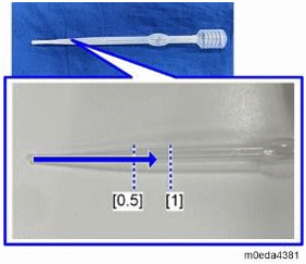 <正面涂硅油>将硅油(零件编号 VSSA9010)倒入滴管(零件编号 M0ED9500)中,直至刻度在 0.5 和 1 之间。