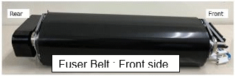 <注意>1)对于那些纸张边缘粗糙的纸张,往往会造成较深的皮带痕迹,这种情况下需要更频繁地进行皮带清洁,并且清洁次数要更多。2)请勿超过定影带零件的使用寿命。