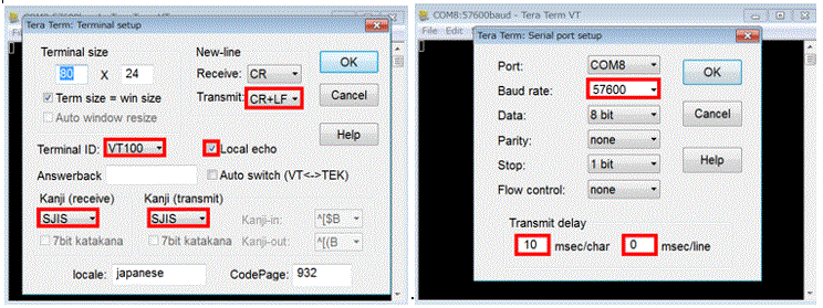 启动引擎。 打开 tera term 应用程序,[设置] > [常规] 然后按如下方式设置。