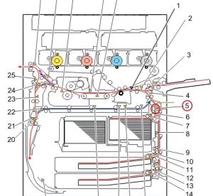 4、清洁一次纸路搓纸轮后,故障依旧,更换一套新搓纸轮后,故障依旧, 5、测试第二纸路打印A4 纸,故障依旧 6、根据测试结果,卡纸现象,纸张纸型错误提示,怀疑是纸张静电较大,搓纸时纸张粘 连,传感器检测A4 纸型超限,造成J060 卡纸频发, 7、将现有纸张尽力抖散,测试打印300 张,未发生卡纸,使用此方法,J060 卡纸偶尔发生,频率在0.05%-0.1%, 8、建议更换纸张, 维修总结: 客户在更换纸张之后,测试打印,未再发生J060 卡纸 |