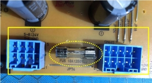 7.在PSU-B 的电路板上查到了24V 的输出插头,万用表量过后确定没 有24V 出去。例行检测了此版上所有的保险丝的通断,保险丝好的, 那说明此电路板上某个电器原件出了问题,导致此板故障.