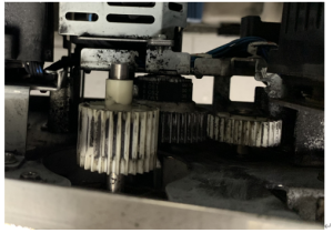 症状: 机器启动时,以及每次作业前的自检会短暂异响,打印中途没有异响,打印完 成后会短暂异响,并且打印中途会频繁卡纸 J031。80g 的双胶纸故障小很多,60 到 70g 的双胶纸根本无法打印,直接报错J031.