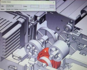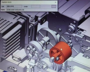 4、第一次更换了上面第一幅图的磨损严重的齿轮,发现还是会出现J-031。 5、仔细观察发现虽然其他两个齿轮磨损没有换掉的严重,但也有磨损,导致每颗齿的间隙变大,在 送纸的时候会出现时限错误,会出现纸张到达转印时限传感器的时间变晚,而出现J-031。 6、更换掉另外两个齿轮后,机器恢复正常。零件编号见下图