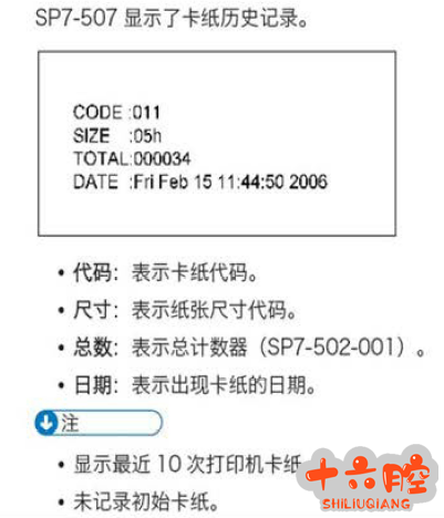 - 标准的7-507的卡纸历史记录,看懂这个记录我们可以事半功倍的解决卡纸故障。