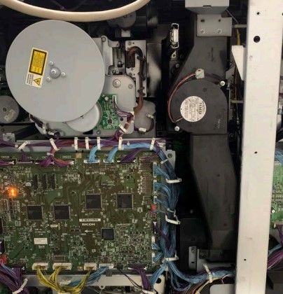 症状:基士得耶 cp6303c 机器印刷时报故障 E-02原因:1、纸台电机问题、纸台驱动不良;2、纸台高度传感器,纸台下限传感器不良;3、主板不良。4、线束接...