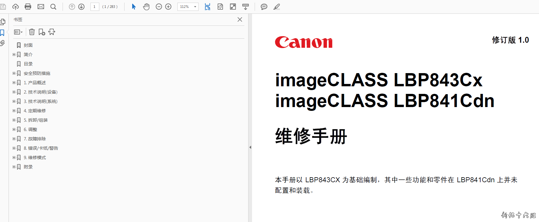 佳能imageCLASS LBP843Cx 841Cdn中文维修手册 |