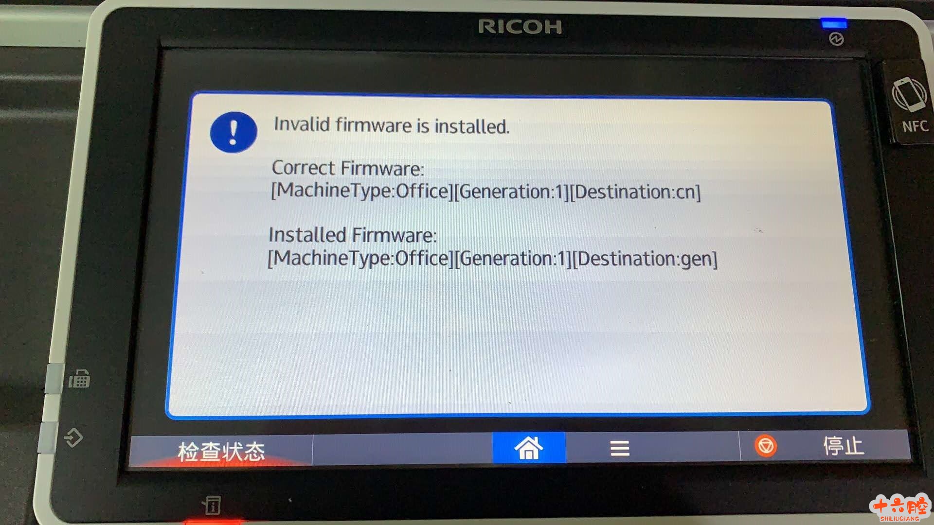 理光MP7503出现固件错误Invalid firmware is installed,6503,9003是一个系列同理。 问题如下: