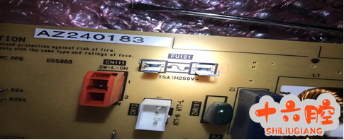 症状: 一台MP9002SP 机器不能进入就绪状态,在等待几分钟后屏幕显示SC670-00的故障现象。 原因: 控制板单元不良; BCU板不良; 母板不良; 软件错误; PSU-E或PSU-C不良; 出纸传感器线束不良。 维修过程: 1.更换控制板,控制板上NVRAM,硬盘,SD卡和内存,故障依旧。 2.更换BCU板和IPU板,故障依旧。 3.检查线束未发现异常。 4. 现场再次检查故障机器,检查电源板,发现FU101熔断。该保险规格为220V5A,更换220V3A保险测试,开机后即刻保险丝熔断。该机安装了稳压设备,检查时,未开启到稳压位置,检查电压为236V。初步判断是由于瞬时高压损坏电源板,电源板上其他保险没有损坏。保险丝位置 如下图所示。