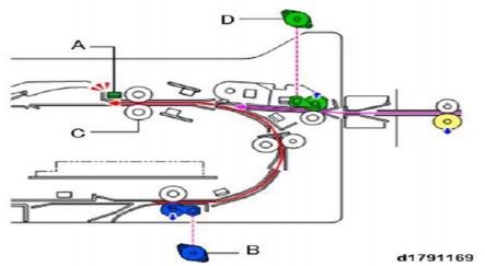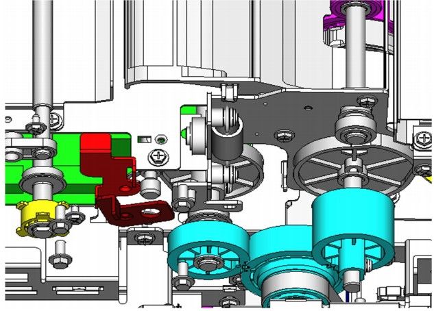 解决方案:对位限时辊磨损间隙大与对位门辊之间配合时走纸延迟导致,具体如下图所示