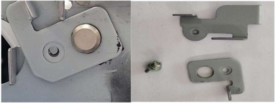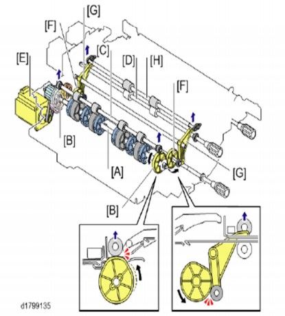 症状:批量打印易报 J032、J034 卡纸 原因: 1. 客户双面打印第二面卡纸 J032/34 卡纸纸张均停留在 PTB 传送带处,印刷厂自切纸张, 单面打印不卡但是纸张输出后微卷,怀疑客户纸张问题,但是客户现场另一台Pro8320S 不卡,更换纸张测试较困难 2. 现场对机腔重点清洁保养,均未发现明显异常,故对 2 台机器抽屉单元详细检查对比,发现新安装的 8320S 对位限时辊机器内测磨损间隙大有明显晃动,如下图