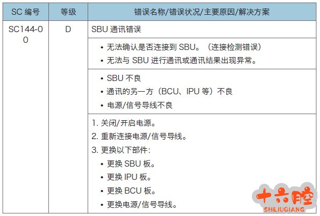 MPC2503SP 开机报SC144-00 1、MPC2503SP 维修手册,SC144-00 代码参考解决方案见下表。