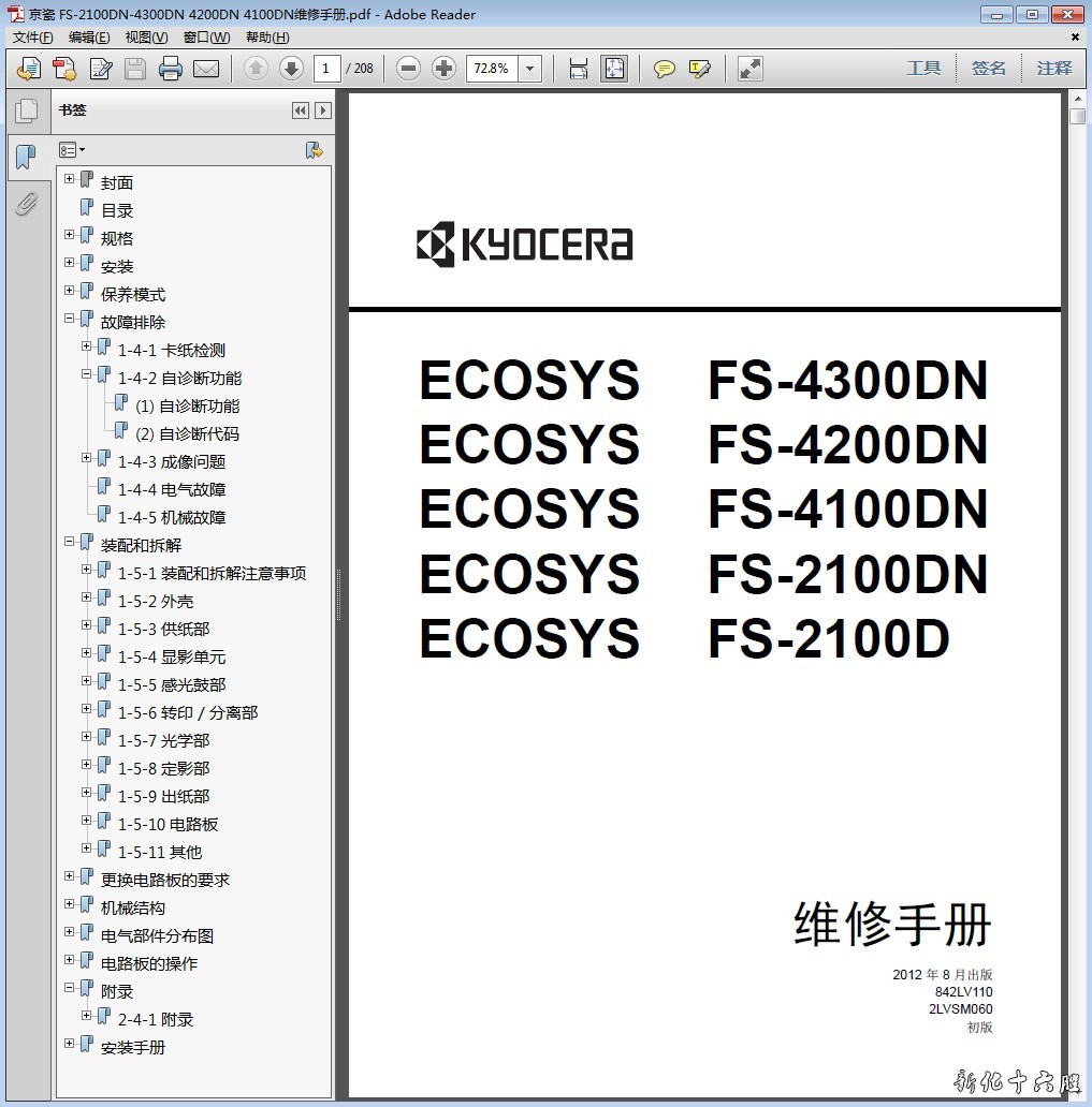 施乐Apeos 2560_3060_3560中文维修手册1.1版本