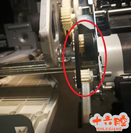 机器在出纸时卡纸,纸张停在定影单元(纸张未出出纸单元)。 分析过程: 检查SP7504,发现出纸传感器记录卡纸次数较多,使用SP5803 检查该传感器,传感器正常。 使用输出检查检查出纸单元出纸电机,电机运转正常。 拉出抽屉单元检查,发现出纸齿轮已被严重磨损,出纸皮带已经脱落。 再次检查机器内部,发现和磨损齿轮的对应位置有残余纸张,取出纸张检查,已经被严重磨损。 原因分析: 机器卡纸,客户拉出抽屉单元取卡纸时,有一半纸张卡在机器内部客户未能发现,此时也可将抽屉单元复位,复位后纸张卡在机器和出纸驱动齿轮之间,长时间的使用造成出纸皮带脱落和齿轮磨损。更换后机器正常。