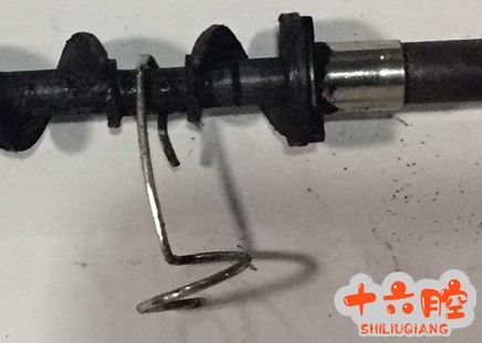 3、下粉弹簧拱起原因: (1) 色粉贮斗中色粉堆积引起弹簧非正常位移; (2) 如果之前拆卸过色粉贮斗,还存在下粉弹簧没有安装到位的可能性。 解决方案 方案一:疏通粉路,确定相关的色粉传送盘管能够正常运转。重新安装下粉弹簧,重新密封上封口。 方案二:更换整套供粉单元组件。 备注: 重新安装下粉弹簧前,尽量修正弹簧的形变,见图(四)弹簧已发生变形。安装下粉弹簧后,旋转图(四)色粉盘管,确认下粉弹簧能够正常上下移动。 |