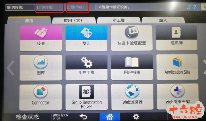 机器开机以后无打印、扫描功能,应用界面中只有与复印相关的程序,与打印和扫描相关的程序都消失,或者变为灰色;以理光imc6000为例