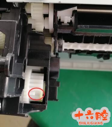 3. 关注点(左为机身齿轮缺口 右为进纸组件缺口 安装重点就是缺口的对齿)