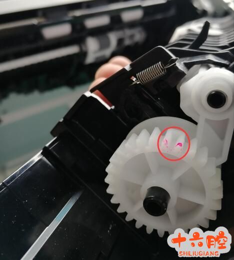 从下往上观察 7) 个人习惯,可以做个小工具(曲别针一根),方便勾住齿轮去对位。 分享总结: 1. 齿轮的对位比较难,一次不成就多试几次。最小化测试有异响马上断电重装。 2. 进纸组件一般真坏掉的很少,能拆装进纸组件绝大部分进纸问题都可以解决,节约整机备件。 3. 180、281类齿轮左侧对位,老款的252、277是右侧对位,相对而言要简单多了,拆装过程大体类似。 |
