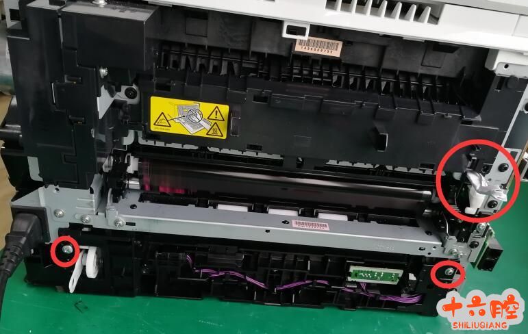 2. 下进纸组件两个螺丝,去掉传感器连接高压板线头(线头拔掉可以省掉取出主板及下面铁架) 取下进纸组件