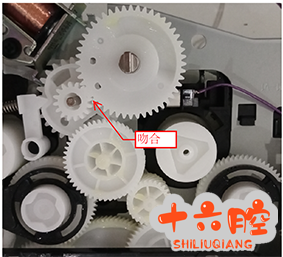 惠普M154/M80/M181/M254/M280/M281系列彩激光报错59.C0及齿轮组拆装说明 59.C0报错: 1、兼容或充粉的耗材导致齿轮组转动困难; 2、排除耗材原因后,最有可能的原因就是齿轮组上驱动显影离合的齿轮错位导致。如下左图,两个齿轮缺齿和连齿的位置错开。正确的位置如下右图所示,两个齿轮的缺齿和连齿的位置互相吻合。
