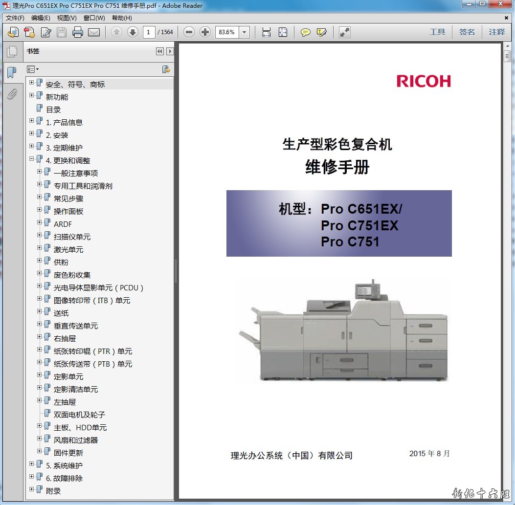 理光 ProC651EX Pro C751EX Pro C751 彩色复印机中文维修手册