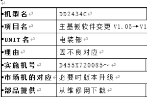 DD 2434C主基板软件变更V1.05→V1.06