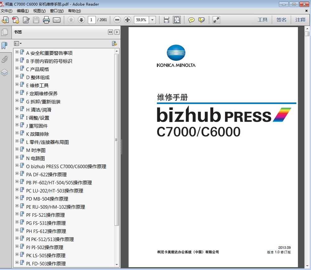 柯尼卡美能达 柯美 bizhub C6000 C7000 彩色复印机中文维修手册 语 言:中文格 式:PDF电子版,无加密页 数:2081页手册内容详实,图文并茂,是维修人员的好帮手,有了维修手册,这款机子的拆卸、故障排除您就不用再发愁了!即使是普通的用户,也可以根据维修手册解决简单的故障。